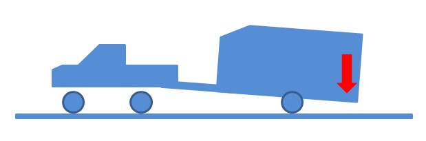 카라반과 연결된 견인차의 뒷 적재함(트렁크)에 많은 짐으로 인한 무게 증가로 뒤가 많이 내려앉은 경우, 카라반 견인 장치(견인 볼)가 너무 낮은 경우, 트레일러 또는 카라반 등의 수직하중(카라반의 무게가 견인차를 누르는 힘)이 무거운 경우에 수평이 안 맞게 될 확률이 높아진다. 무게중심으로 인해 수평이 안 맞을 경우 대부분의 하중이 견인고리와 커플러로 쏠리게 되어 견인차의 앞바퀴 접지력을 떨어트린다. 전륜 2륜 차량일 경우 심하면 지형에 따라 또는 비와 눈이 내린 도로에서 앞바퀴가 헛 돌 수 있다. 앞바퀴가 헛도는 상황이 발생한다면 안전을 보장받을 수 없다. 견인차의 뒷처짐으로 인해 전면(앞)이 약간 위쪽 방향으로 향하게 된다. 라이트를 켰을 시 앞 차량 또는 마주오는 차량에게 상향 등을 켠 것처럼 눈부심을 받게 할 수 있으니 주의하여야 한다. 또한 방지턱이나 지형에 따라 견인장치가 노면에 닿을 수 있다. 수평의 각이 매우 심하게 틀어진 경우 견인볼의 이탈이 발생될 수 있기 때문에 수평을 반드시 맞추어야 한다. 이때는 견인차 적재함의 짐을 줄여 트렁크를 가볍게 하여 무게중심을 맞추어 본다. 심할 경우 견인차 리어 스프링을 강성 스프링으로 보강하여 수평을 맞출 수 있다. (한번 내려앉은 리어 스프링은 복원되지 않기 때문에 비견인 시에도 주저앉게 된다.) 약간의 리어 처짐은 우레탄 완충기를 장착하여 수평을 맞출 수 있다. 하지만 우레탄 완충기의 경우 내구성이 약하기 때문에 시간이 흐름에 따라 교체해 주어야 한다. 신차 출고 시 에어서스가 장착되어 있는 모델도 있다. 에어서스는 설정 한 값으로 높이를 조절해 주기 때문에 수평을 맞추기 수월하다. 외부 업체에서 에어서스를 장착하는 방법이 있지만 큰 비용이 발생하는 단점이 있다. 견인차의 리어 스프링의 처짐이 없는 정상적인 상태인데도 카라반의 수평이 맞지 않는다면 카라반의 높이에 맞는 견인 고리 또는 견인 볼을 교체하여 수평을 맞추면 된다. 반대로 견인볼이 높게 장착되어 카라반의 앞(전면)이 높아지게 된다면 카라반의 후미가 내려앉게 되는데 이는 매우 위험하다.