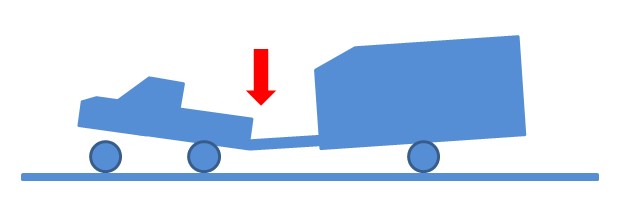 카라반 후미가 처질 수록 스웨이(sway) 현상이 발생될 확률이 매우 높다. 스웨이 현상은 차량이 매우 심하게 흔들리는 현상인데 물고기가 헤엄치는 모습과 비슷하다고 하여 피쉬테일(fishtail) 현상이라고도 한다. 짐을 가득 싣은 수레(리어카)를 당나귀의 엉덩이에 묶어 끌게 하고 있다고 상상해보자. 짐이 많이 적재되어 수레의 무게중심이 뒤쪽으로 쏠리면 당나귀의 엉덩이가 살짝살짝 들리면서 뒷다리가 조금씩 들리게 될 것이다. 무거운 수레를 끄는 당나귀가 빠르게 달리는 중 엉덩이와 뒷다리가 들리는 상황이 발생된다면 어떠한 상황이 벌어질까? 상상만 해도 당나귀한테 미안한 마음이 든다. 운전 중 스웨이가 발생되면 가슴 철렁한 경험을 하게 될 것이다. 이러한 경우 무게중심을 견인차 후미와 카라반 앞면으로 향하게 하여 수평을 맞추어야 한다. 견인차 적재함(트렁크)으로 짐을 옮겨서 후미를 낮추고 카라반 앞쪽에 짐을 실어 수평을 맞추어야 한다. 그래도 수평이 맞지 않는다면 견인고리의 견인볼 높이를 조절해가며 맞추어야 한다. 견인 볼 높이 조절이 불가한 고리는 짧은 길이의 견인 고리(마운트)를 장착하여 수평을 맞출 수 있다.