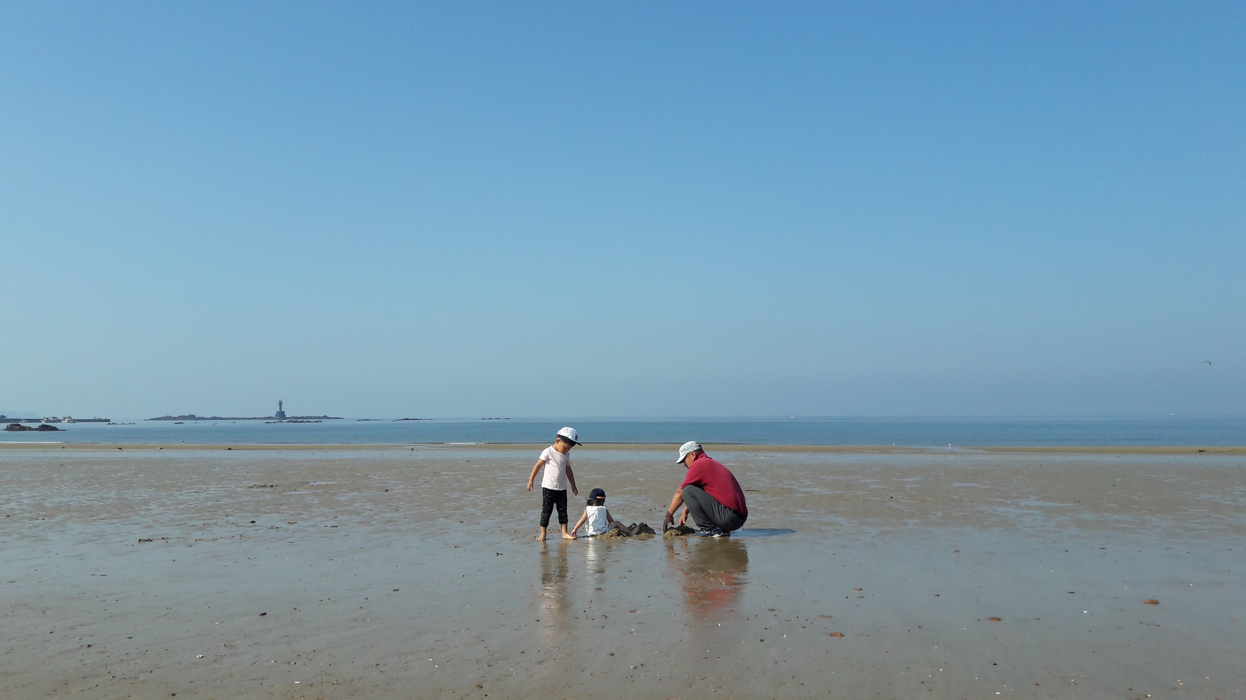 카라반과 함께 서해로 출정을 나갔다. 썰물 시간 되자 해안가의 바닷물은 서서히 빠지기 시작했다. 바닷물이 빠지자 모두 약속이나 한 듯 많은 많은 분들이 갯벌로 들어간다. 쪼그려 앉아 바닥을 보며 무언가를 채집도 하고, 삽으로 갯벌을 파기도 한다. 물이 빠질수록 더 많은 사람들이 갯벌로 들어왔다. 갯벌에 들어온 사람들은 셀 수 없을 정도로 매우 많다. 이 많은 사람들이 어디에서 왔을까? 무엇을 잡으려 하는 것일까? 궁금하여 슬쩍 가서 보았더니 바지락을 잡고 있었다. 유심히 보았더니 채집 방법이 어려워 보이지 않는다. 해루질 한번 해보지 않는 저였지만 " 나도 한번 잡아볼까? " 하여 해변 앞 마트에서 5,000원짜리 호미를 구입했다. 밀물이 되기 전에 빨리 많은 양을 채집하여 가족들과 시원한 바지락을 끓여 먹을 생각에 설렌다. 시간 가는 줄 모르고 열심히 바지락을 채집하고 있었다. 채집통에 채집량이 늘어나자 신이 났고 재미가 붙는다. 저 멀리 그만 잡고 나오라는 와이프의 말에도 " 이 양으로는 우리 가족들이 부족할 텐데... 조금 더 잡아야겠다 " 싶어 들은 체도 안 한다. 물 빠진 갯벌에서 한 시간을 넘어 두 시간째 집중에 집중을 더 하고 있었다. " 탁탁탁 " 돌 사이로 호미질을 하는 순간 호미에서 붉은 물이 뚝뚝 떨어진다. 깜짝 놀랐다. 바위에 붙어있는 굴 껍데기에 베이고 만 것이다.
