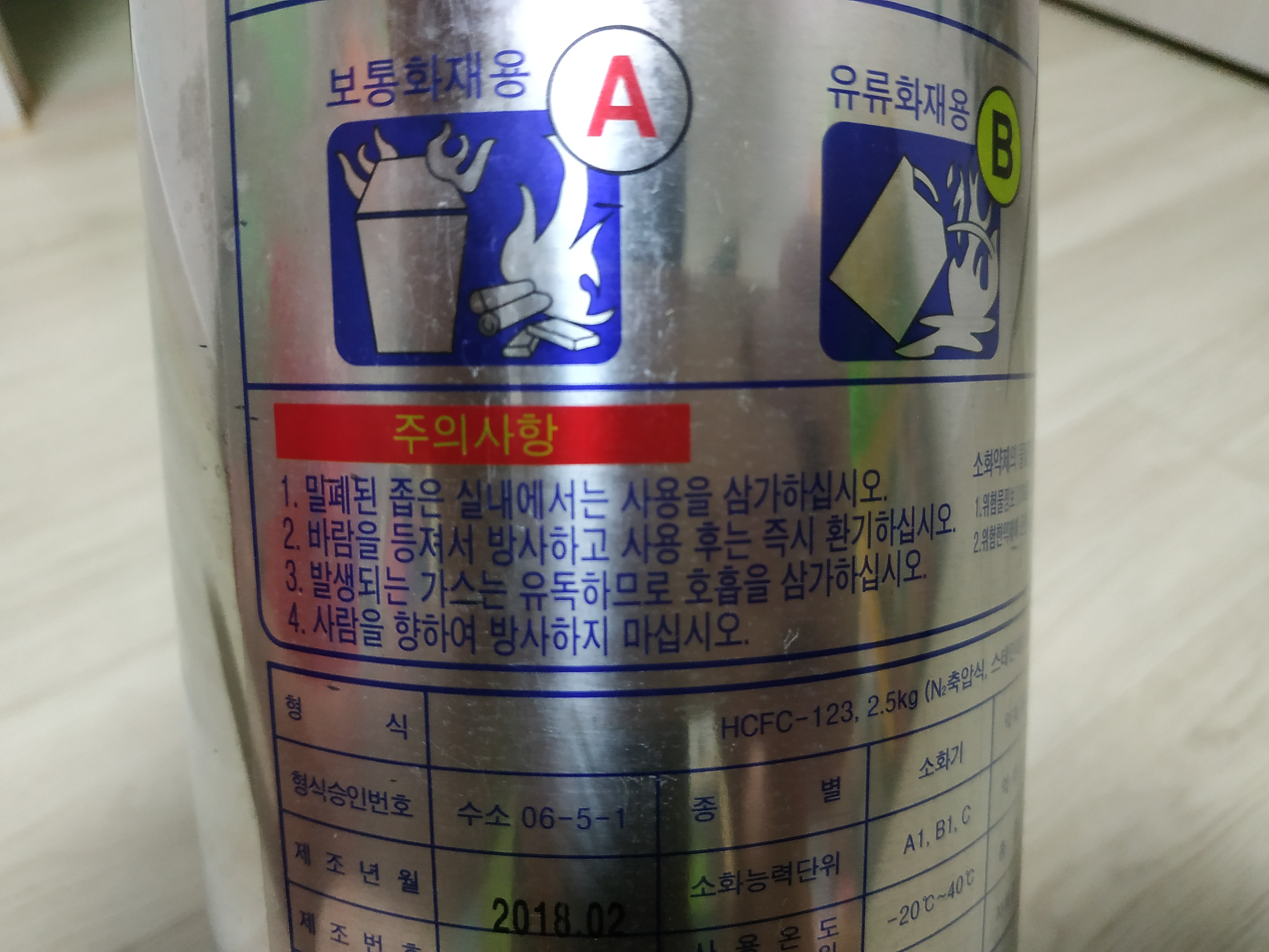 #분말 소화기, #청정, #하론, #할론, #가스, #기체, #HCFC-123, #1301, #사용방법, #스프레이, #표기사항, #주의사항, #캠핑, #차량용, #카라반, #모터홈, #3.3kg, #2.5kg, #1.5kg, #사용법, #작동법, #관리방법