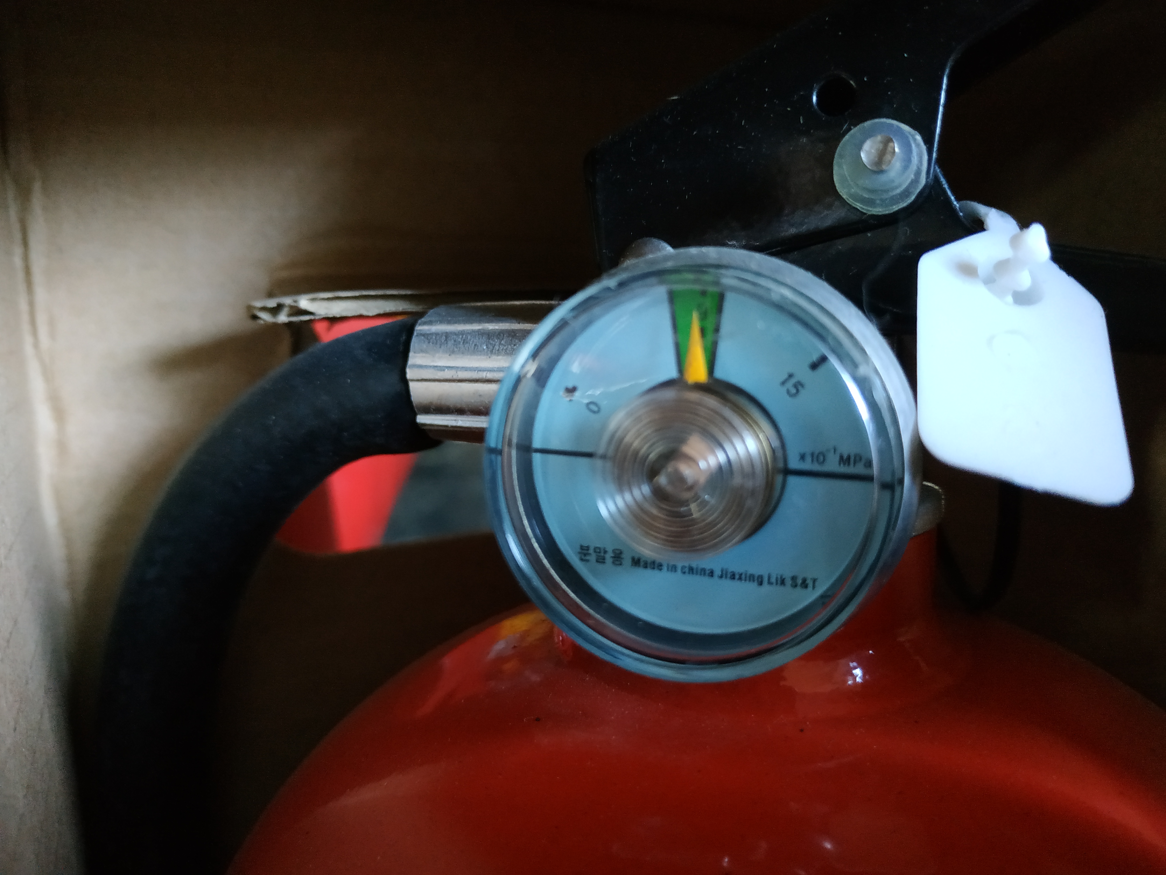 분말 ABC 소화기는 모든 화재에 대응할 수 있다. 분말소화기는 질식 소화방식으로 분말 약제가 불을 덮어 산소의 공급을 막는 방식이다. 분사 도중 멈출 수 있고 가격이 저렴하기 때문에 범위 넓게 사용되고 있다. 하지만 장시간 동안 보관 시 분말 약제가 고착될 수 있다. 고착 방지를 위해서 한 달에 한두 번은 소화기를 거꾸로 뒤집어 흔들어 분말 약제를 섞이게 해야만 한다. 단단하게 고착된 분말 약제는 거꾸로 들고 흔들어도 굳어서 풀어지지 않기 때문에 주기적으로 흔들어야 한다. 또한 소화기의 압력계가 정상인지 확인해야 한다. 아래 사진의 초록색 범위가 정상이다.