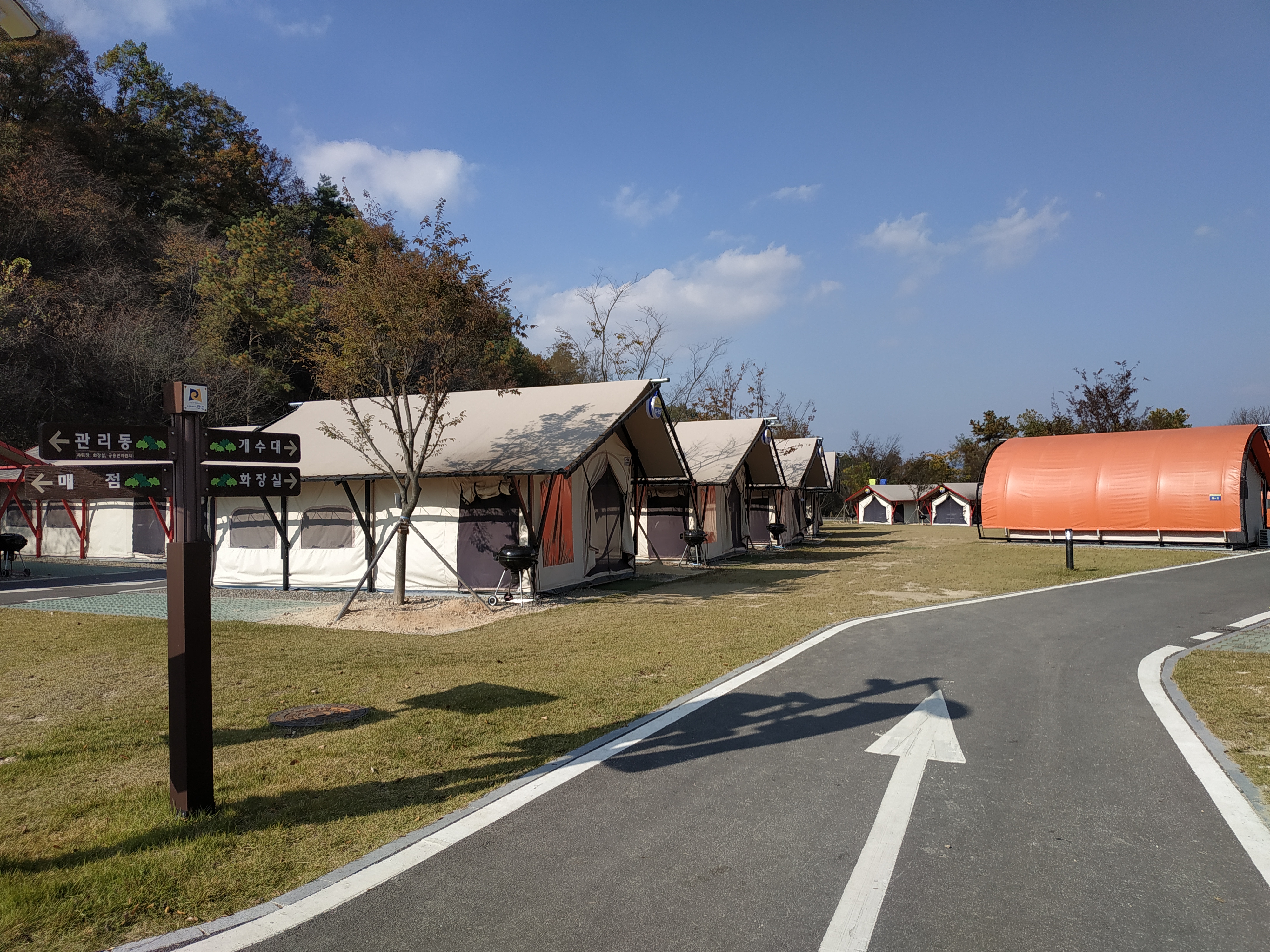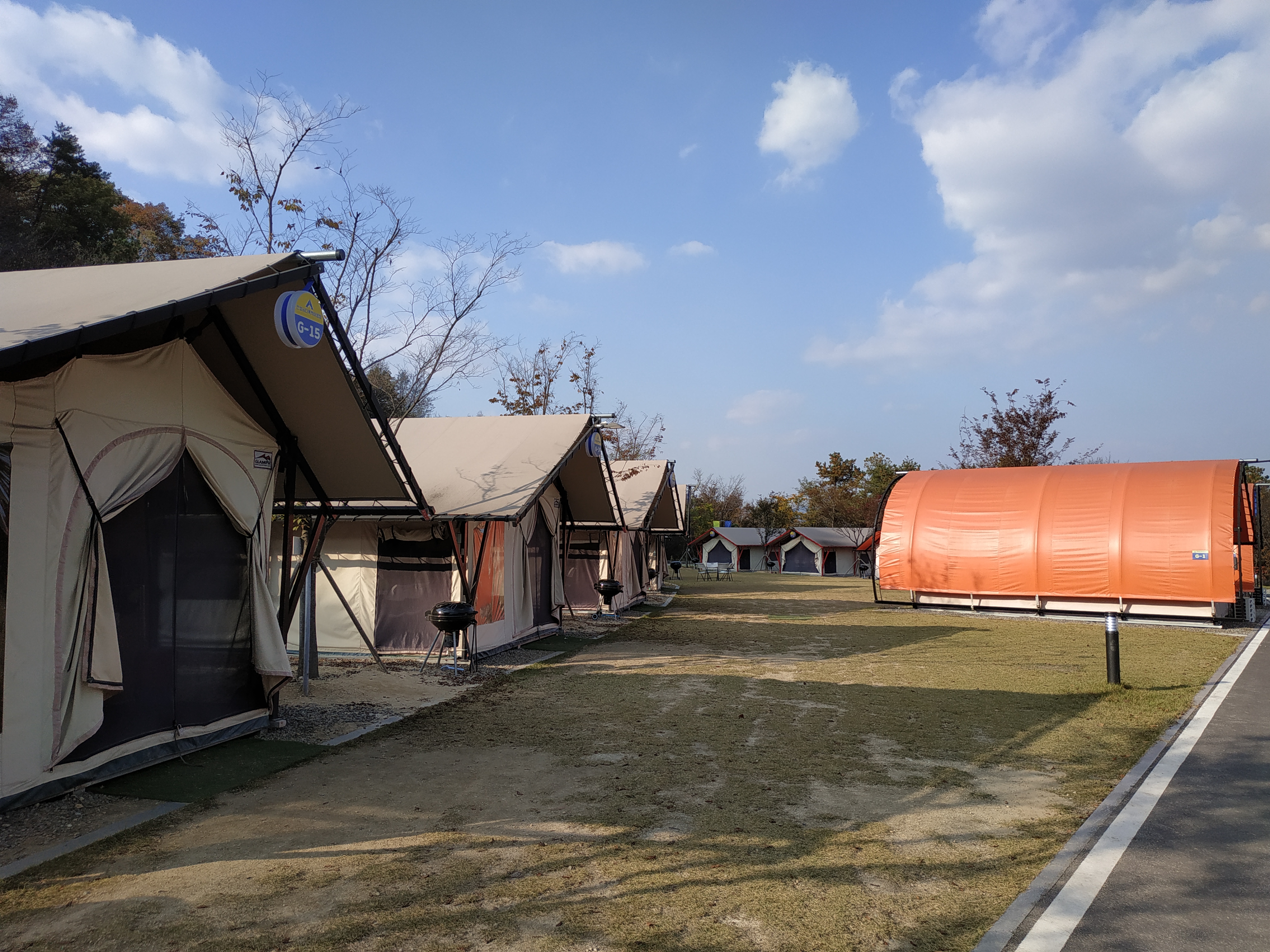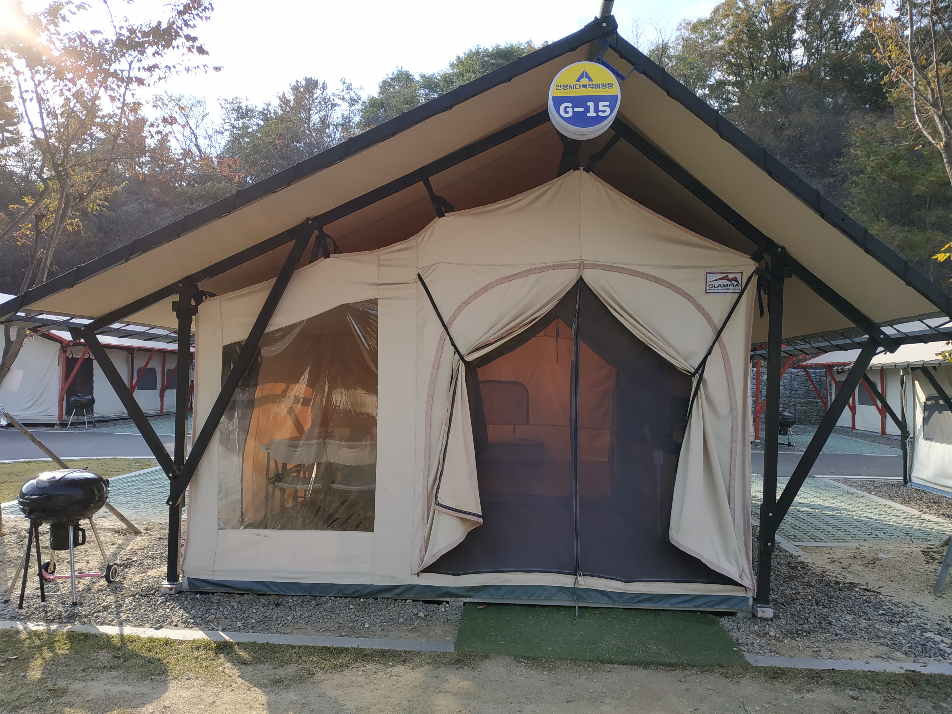 안성시 다목적 야영장 중앙에 위치한 글램핑장.