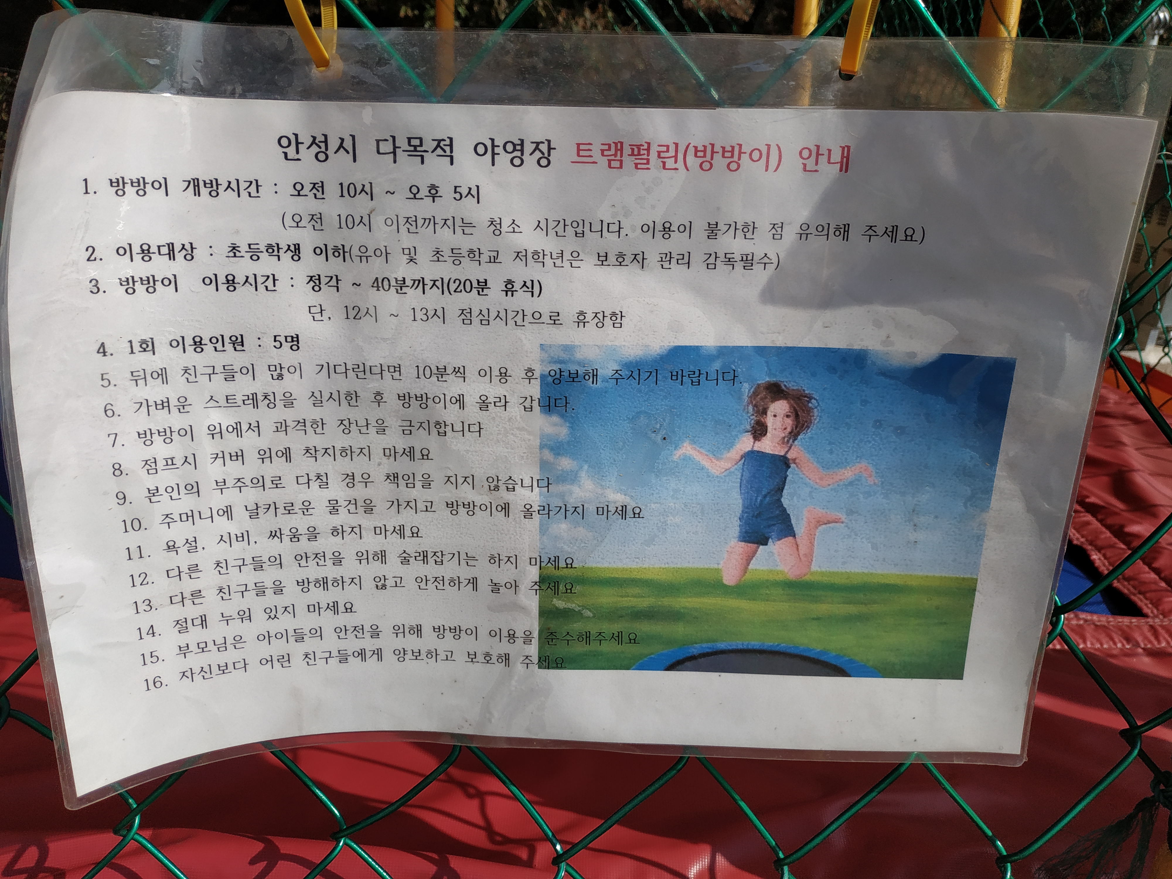 체육활동장 옆에는 트램폴린 (방방)이 준비되어 있다.