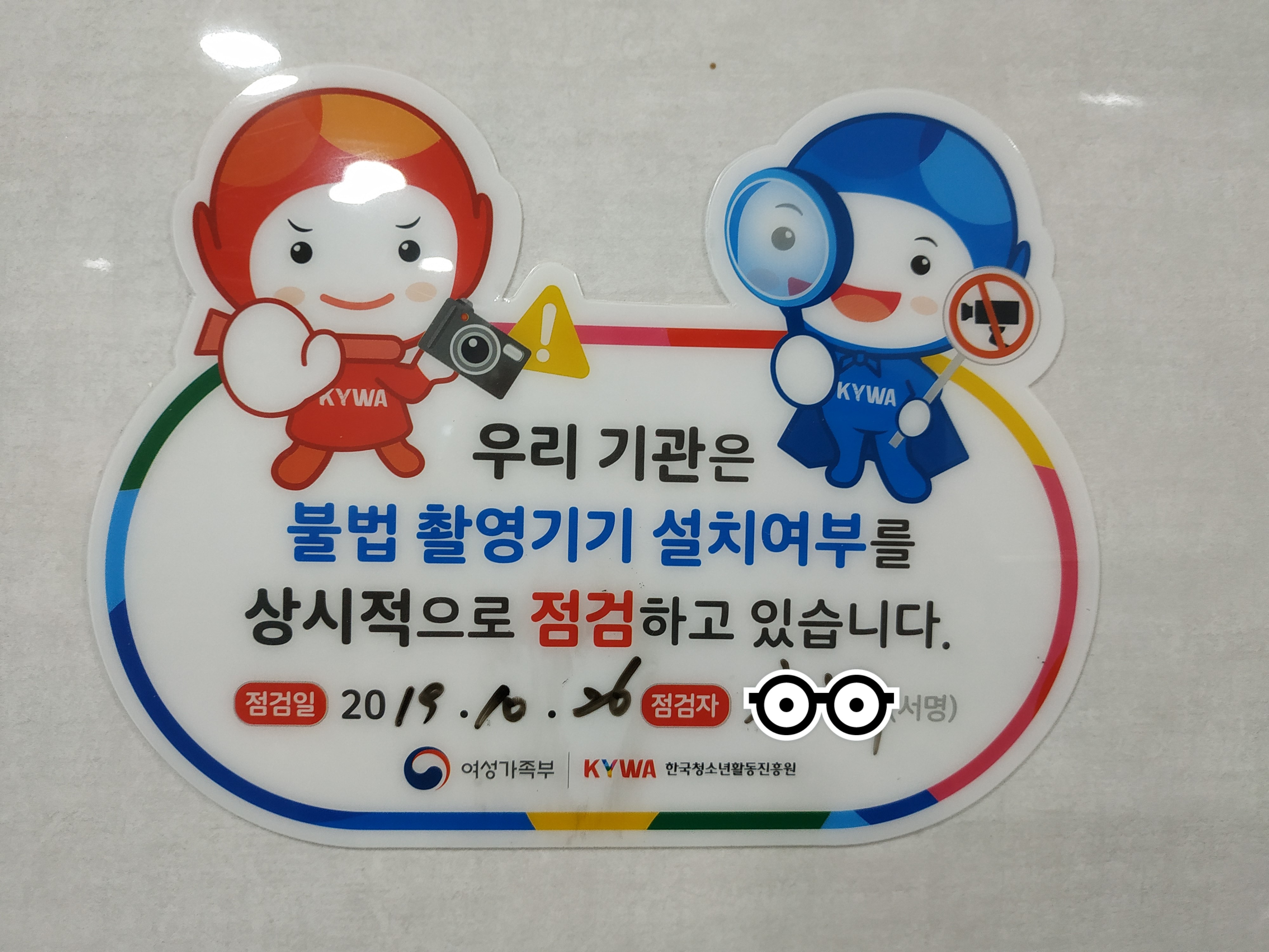 불법 촬영기기(몰래 카메라) 설치 여부를 상시적으로 점검하고 있다. 화장실 위생점검표와 더불어 불법 촬영기기 점검표를 보고 나니 매우 안전하게 이용할 수 있다.