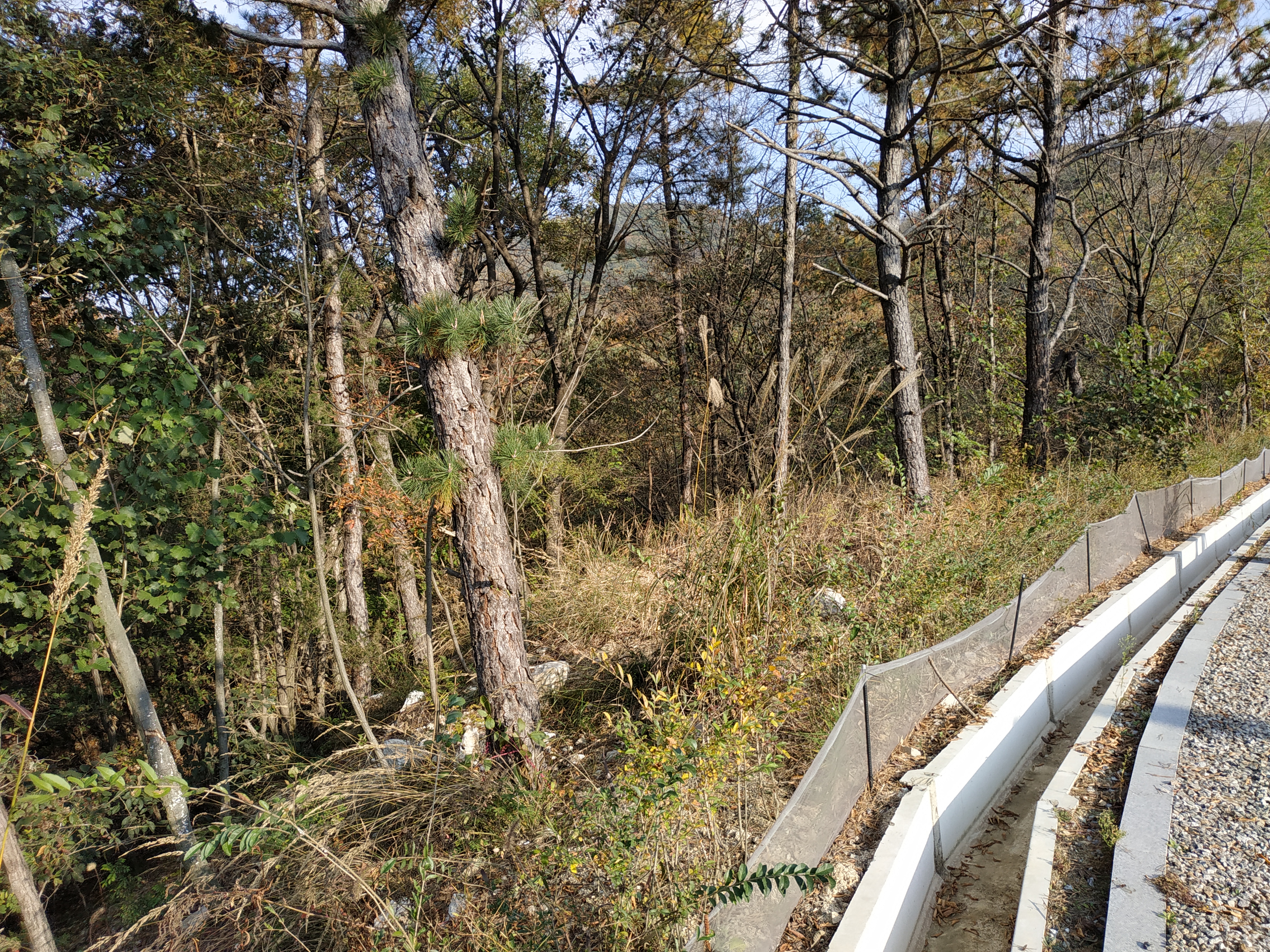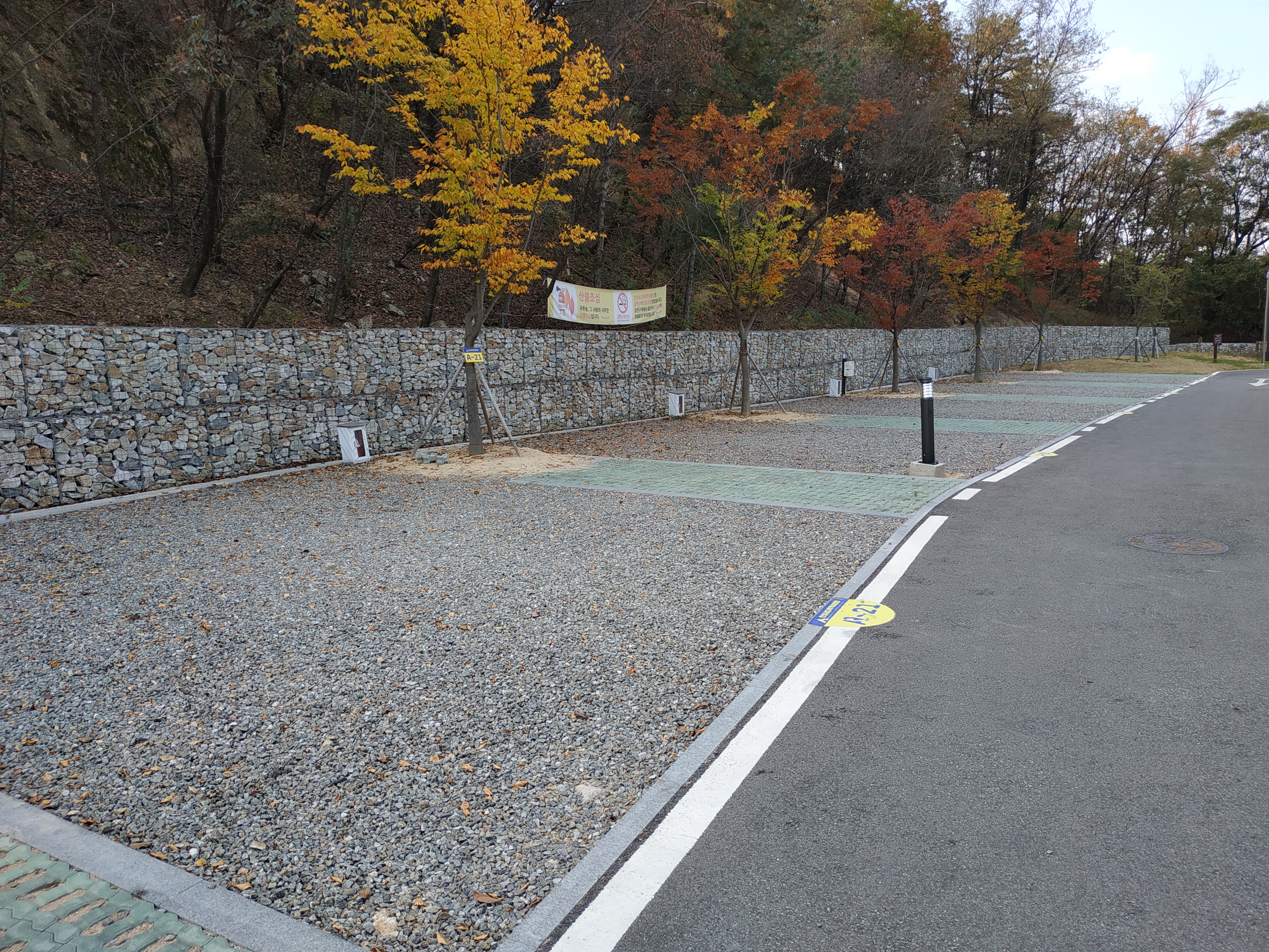 산 밑에 위치한 사이트는 토사가 무너져 내리지 않도록 돌벽을 세워 놓았다.