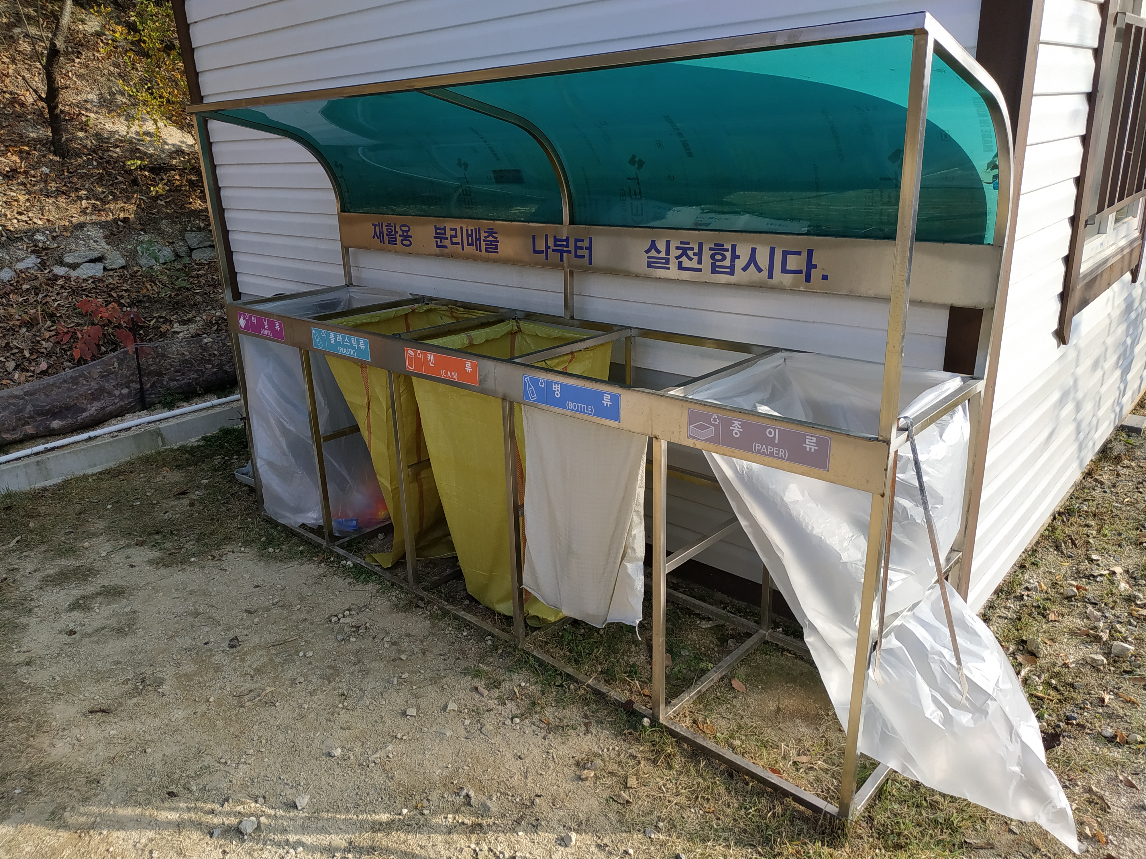 일요일 정오에 촬영한 사진이다. 분리수거장 관리 상태가 매우 우수하다.