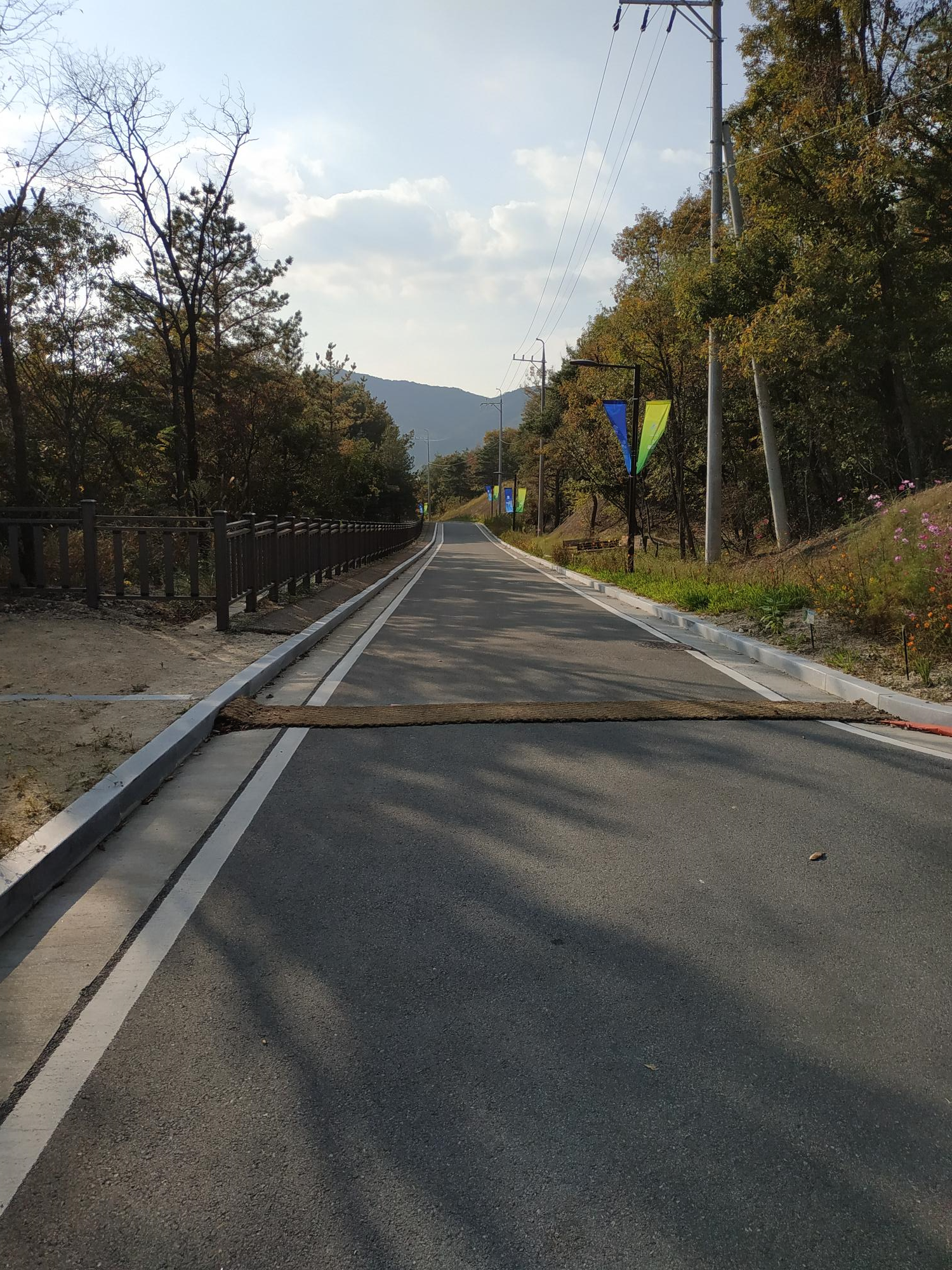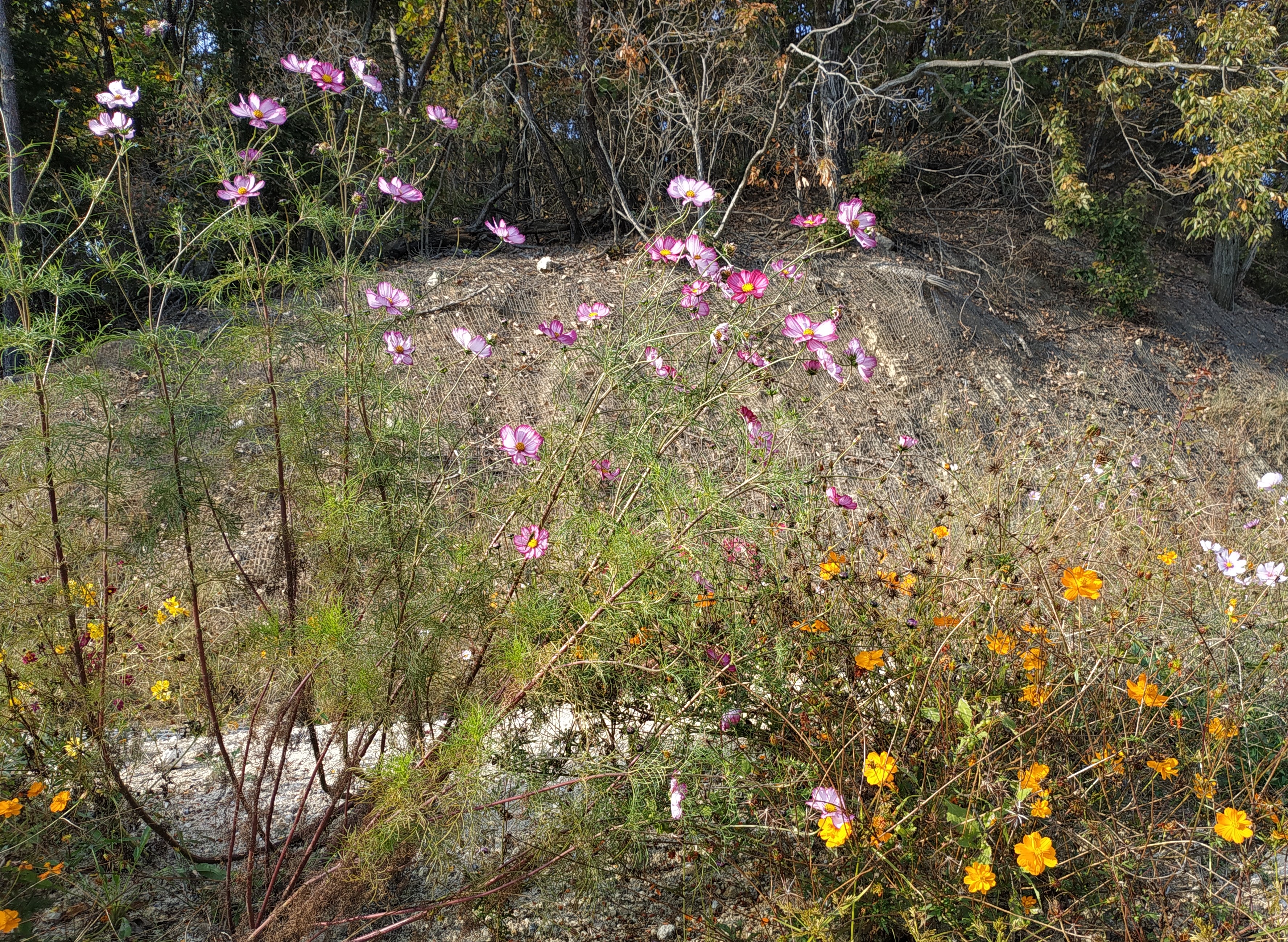 출입로 우측에 꽃을 심어 놓았지만 풍성하지는 않다. 하지만 가을 코스모스를 느끼기에 충분하다.