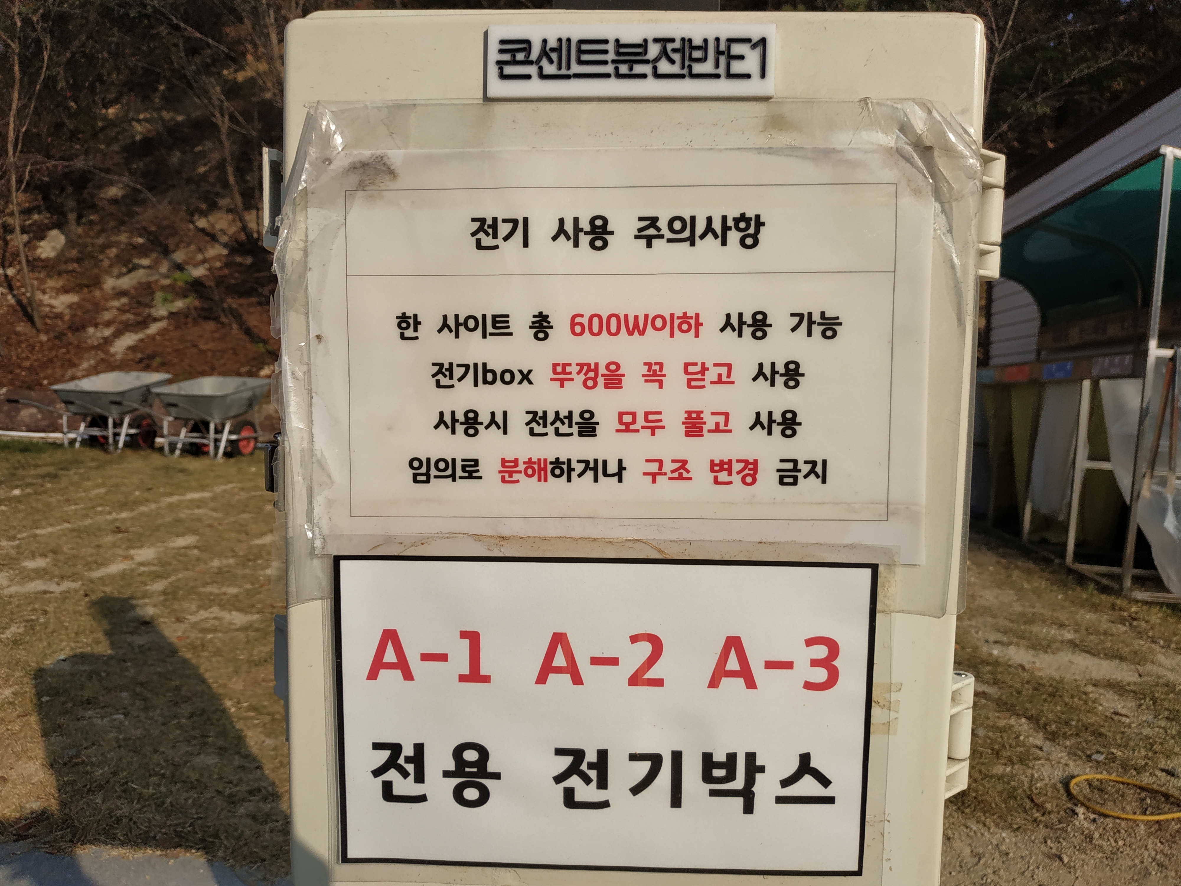 한 사이트 총 600W 이하의 전기를 사용 가능하다.