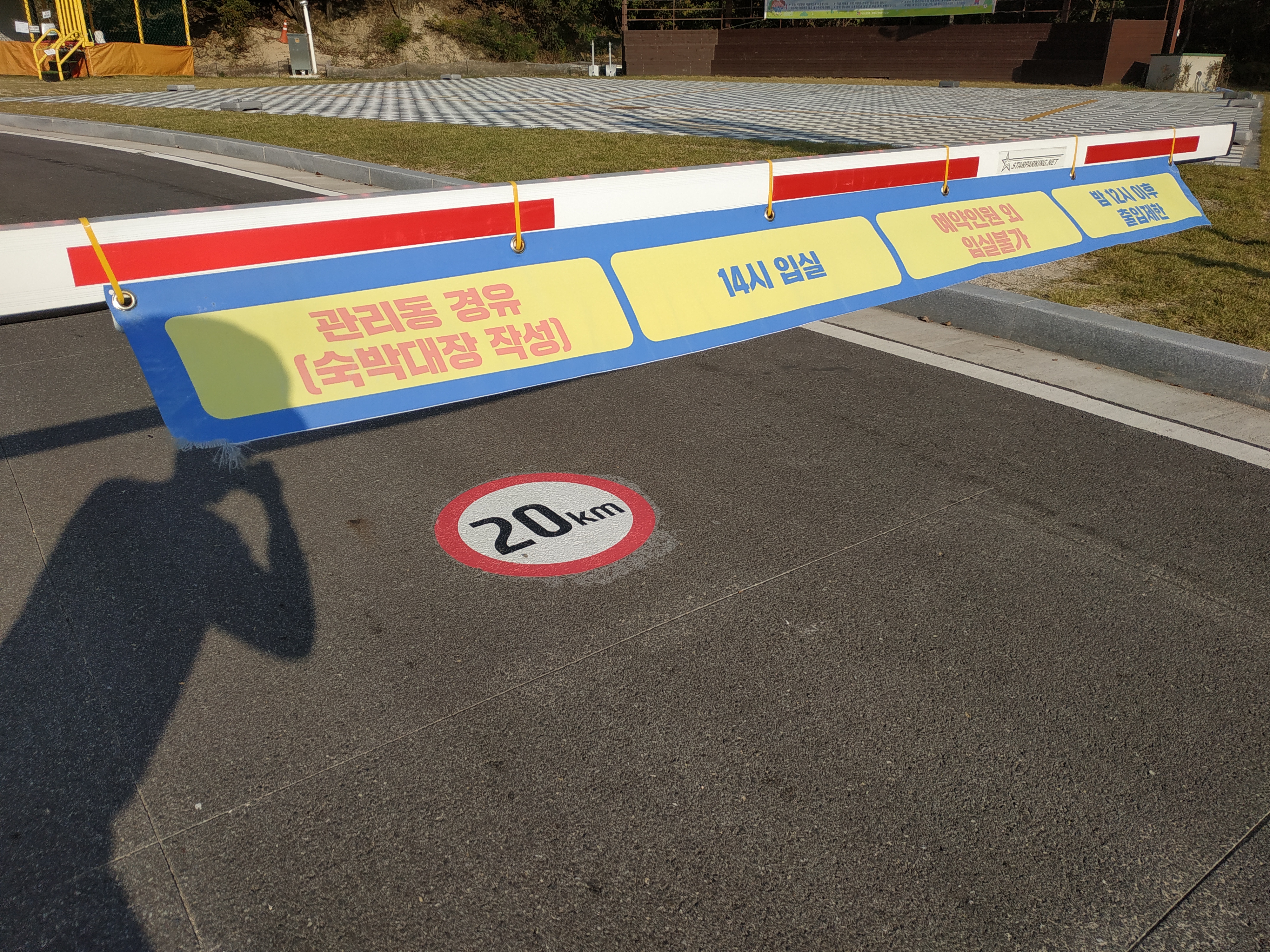 출입로를 따라 야영장에 도착하면 관리동에 경유하여 숙박대장을 작성해야 한다. 입실 시간은 14시 퇴실은 익일 11시이며 예약인원 외 입실이 불가하다. 예약 시 기본 4명 기준이며 추가 인원은 최대 2명 포함하여 총인원 6명까지 이용할 수 있다. 인원이 추가될 시 1명당 3,000원의 추가 요금이 발생된다. 늦은 밤 주변 이용분들에게 피해를 주지 않게 밤 12시 이후에는 출입이 제한된다.