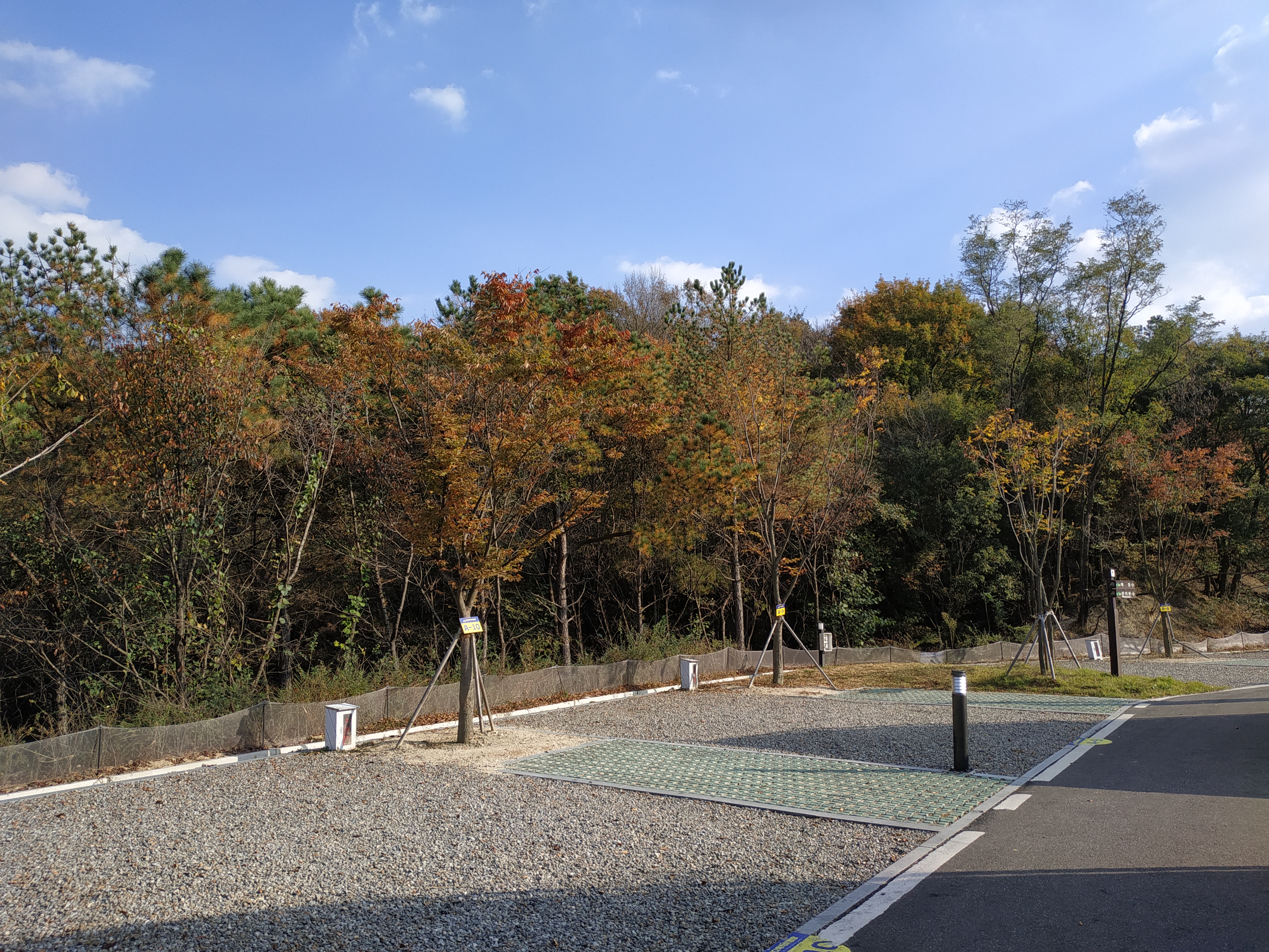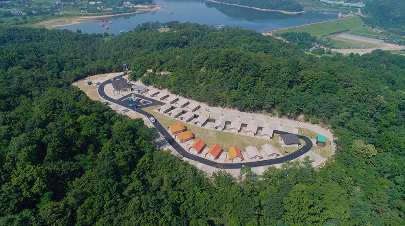 글램핑장을 중심으로 바깥 쪽은 캠핑장 사이트가 자리 잡고 있다. 옆 사이트가 가까운 느낌이 들고, 야영장 내 차량 이동시 운전하기에 다소 좁다. 카라반 또는 캠핑 트레일러 주행 시 회전에 어려움이 발생될 수 있으니 조심스럽게 운전해야 한다.