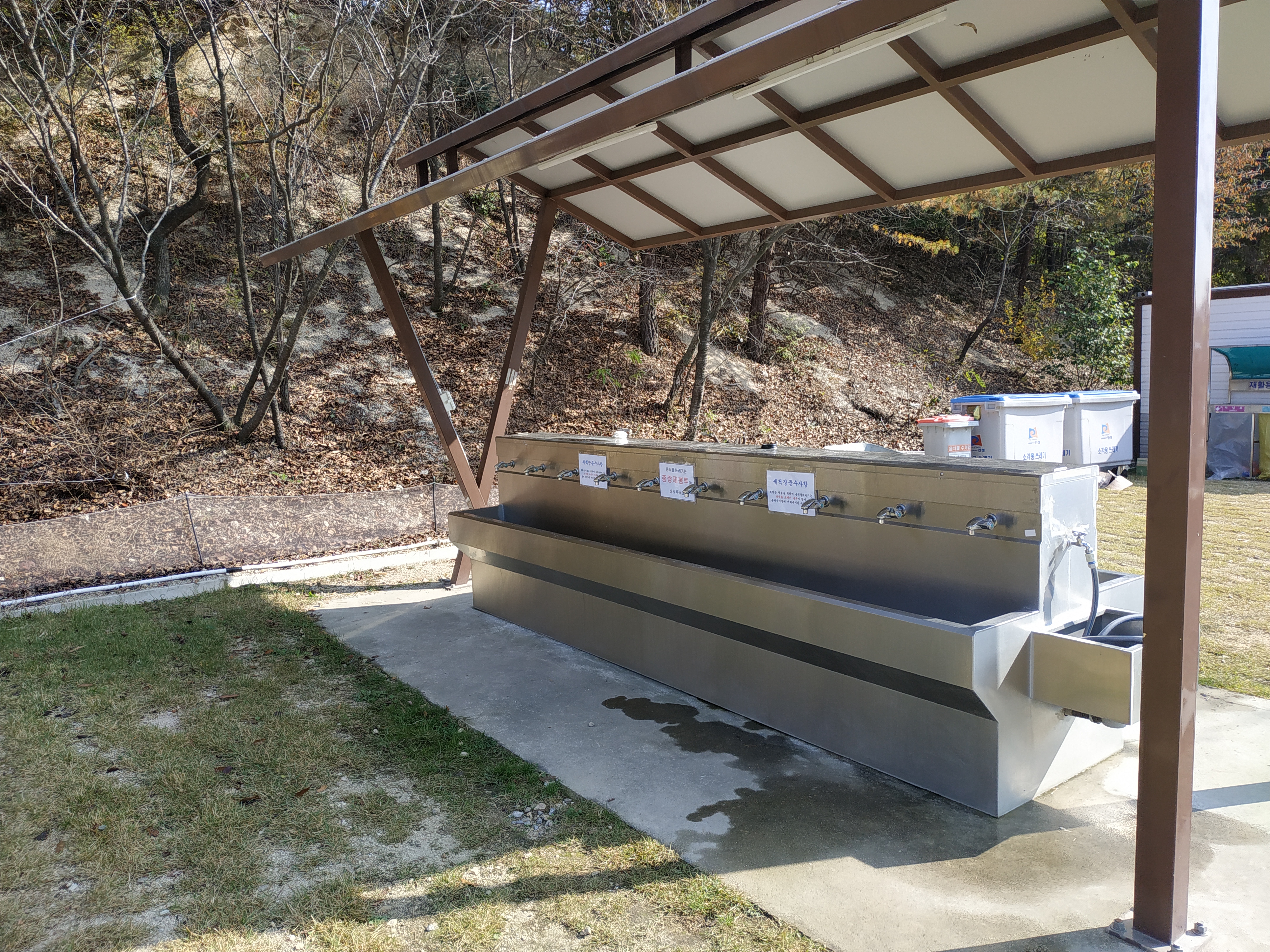 여러 캠핑장을 이용했지만 별도의 세면장이 있는 것은 이 곳이 처음이다. 대부분 캠핑장의 경우 화장실, 개수대, 샤워장으로 이루어져 있는데 이 곳 안성시 다목적 야영장은 세면장이 별도로 마련되어 있기 때문에 손과 발을 씻기에 편리했다.